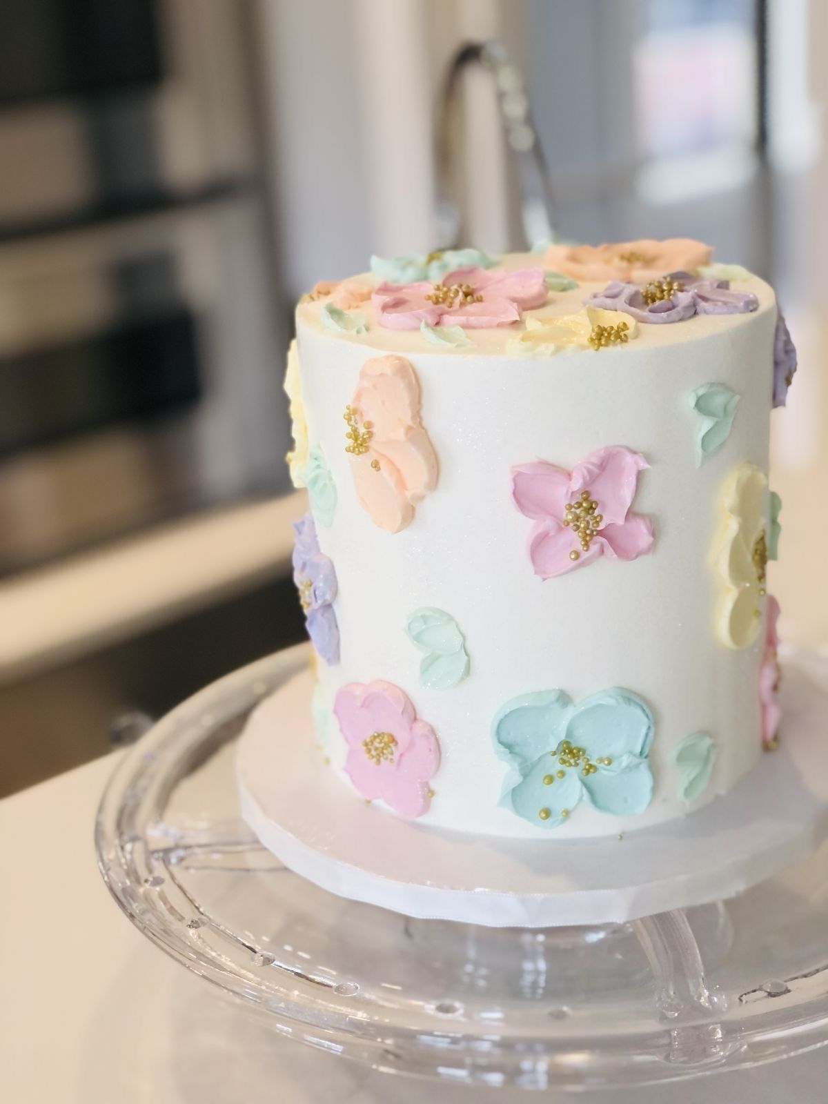- Termina de decorar la torta según tu elección. Haz los bordes si aplica, escribe, decora con sprinkles, etc, etc….